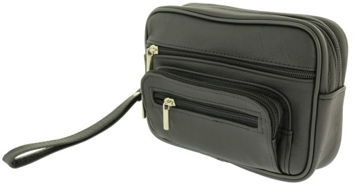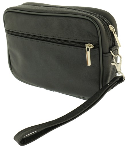 - Saszetka posiada: jedną komorę wyścieloną bardzo dobrą jakościowo podszewką o wymiarach 19,5 x 14 x 4 cm; z przodu umieszczona jest wypukła kieszonka o wymiarach 14,5 x 7,5 cm, dwie dodatkowe kieszonki zamykane na solidny suwak (jedna z przodu druga z tyłu); wygodny skórzany uchwyt, dzięki któremu można wygodnie nosić saszetkę w ręce