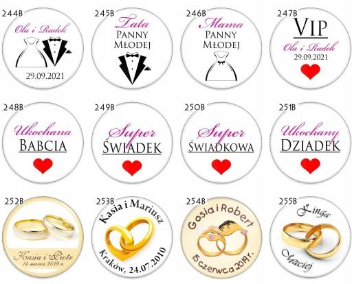 Na przypinkach można samodzielnie dopisać dowolny tekst (pisakiem permanentnym lub suchościeralnym) np. wzory 232 - 235. Możemy na nich również umieścić teksty przesłane przez Państwa.