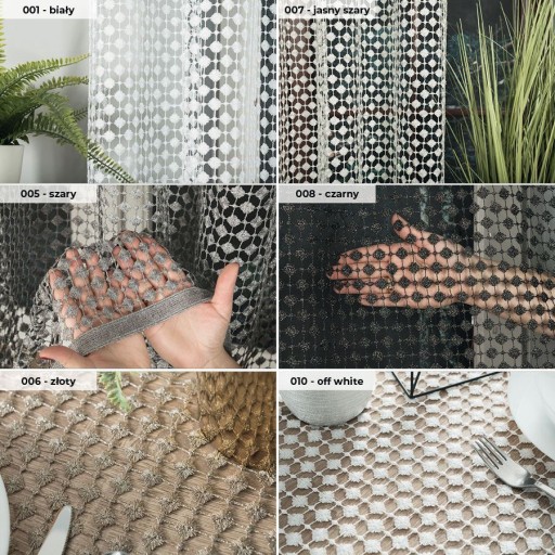 Materiał tkaniny o strukturze stworzonej z małych kropek oraz delikatny błysk to cechy, które zamienią każdą aranżację wnętrza w niebanalną i unikalną. Tkanina gipiurowa dzięki, swojej uniwersalności może posłużyć jako dekoracja okna w postaci firany lub zasłony jak również możesz ją zastosować jako elegancki obrus. Materiał dekoracji posiada lurex, co sprawia, że jest niezwykle elastyczny, lejący, świetnie się układa, i nie wymaga prasowania.