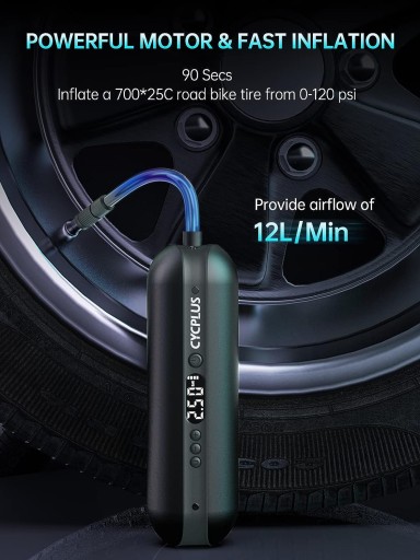 Ta mini elektryczna pompa powietrza ma maksymalne ciśnienie 150 PSI, dzięki czemu możesz łatwo napompować wszystkie samochody, motocykle, opony motocyklowe lub inne mniejsze przedmioty w ciągu kilku sekund. Posiada 4 wartości jednostkowe: PSI, BAR, KPA, Kg/cm², możesz regulować i monitorować ciśnienie w oponach w dowolnym momencie.