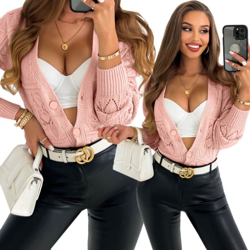 SWETER WYGODNY NARZUTKA ROZPINANY AŻUREK GUZIKI