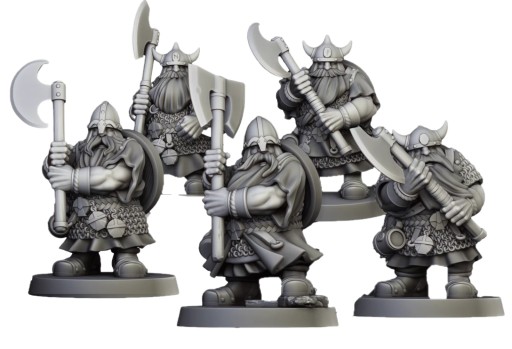 Oferujemy zestaw dziesięciu figurek Clan Warriors with great weapons (Dwarf Warriors with Two-Handed Weapons autorstwa Highland Miniatures), wydrukowany na drukarce żywicznej.