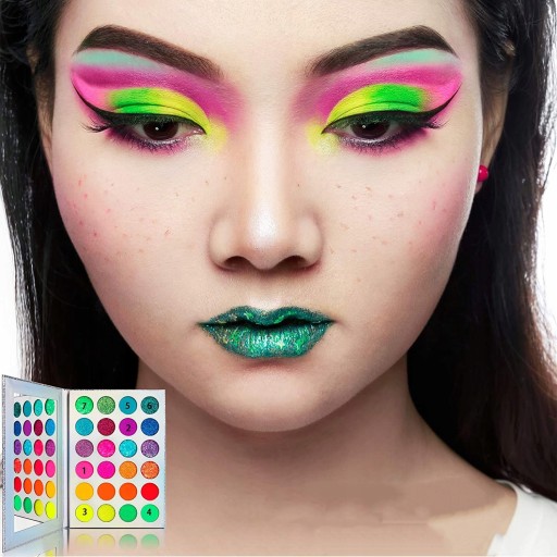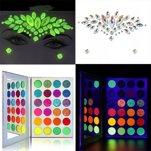 - Paleta cieni do powiek zawiera: 8 regularnych kolorów brokatu w świetle dziennym, wrażliwych na promieniowanie UV w czarnym świetle - 5 matowych neonowych odcieni i 11 stłumionych brokatowych odcieni. Nadaje się na dzień i noc, wakacje, imprezy, klub, randkę, wesele, Boże Narodzenie, Halloween