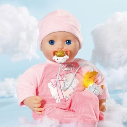 Owieczka i księżyc pomagają Baby Annabell zasnąć i mieć słodkie sny. Jak tylko smoczek znajdzie się w buzi, gra kołysankę, a owieczka śpiewa piosenkę "Baa". Uroczy księżyc oświetla drogę do krainy marzeń. Smoczek może być przymocowany do śpiworka za pomocą klipsa z chmurką, dzięki czemu nie wypadnie z łóżeczka.