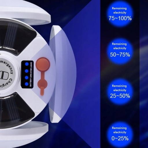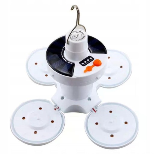 3. Panel ładowania słonecznego: Ta lampa kempingowa może być nie tylko ładowana przez USB, ale także wyposażona w ładowarkę słoneczną. Może odbierać energię w dowolnym momencie za pośrednictwem paneli słonecznych, aby zaspokoić potrzeby oświetlenia zewnętrznego lub zasilania telefonu komórkowego.