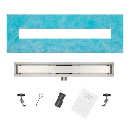 Odpływ liniowy 2w1 pod płytkę z wysokiej jakości stali nierdzewnej o sztywnym, niskim syfonie.