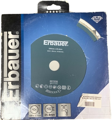 Dzień dobry, na sprzedaż posiadamy tarczę z diamentu i stali marki Erbauer 250 x 2,5 mm/25.4 mm. Tarcza przeznaczona do cięcia drewna. Tarcza nowa.