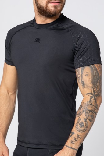 Szybkoschnąca męska koszulka termoaktywna wykonana z najwyższej jakości oddychającej tkaniny. Podkreśla atuty męskiej sylwetki i zapewnia wysoki komfort podczas ćwiczeń. Posiada dodatkową ochronę antybakteryjną.