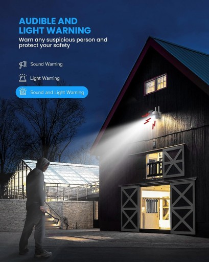 Kamera słoneczna jest wyposażona w czujnik ruchu PIR do wykrywania ruchu ludzi i zwierząt w zasięgu widzialnym. Zmniejsz irytację fałszywych alarmów. Gdy włączony jest tryb alarmu dźwiękowego i wizualnego, zewnętrzna bezprzewodowa kamera słoneczna wifi emituje światła i syreny po wykryciu ruchu, rejestruje całe zdarzenie i wysyła przypomnienie o alarmie. Skutecznie zapewnij Tobie bezpieczeństwo w nocy.