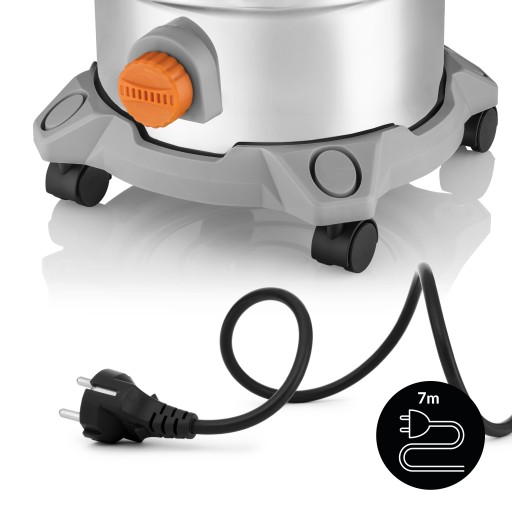 Długi przewód zasilający - siedmiometrowy przewód ułatwia sprzątanie większych powierzchni, bez konieczności ciągłego przepinania kabla. Obudowę wzbogacono o uchwyt do łatwego zawijania i przechowywania kabla.