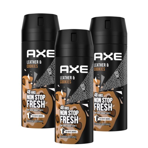 3X AXE LEATHER & COOKIES SPRAY 150ML