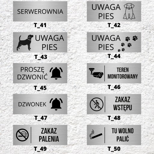 - W przypadku braku podania wybranego wzoru tabliczki, wysyłamy ten, który znajduje się na zdjęciu głównym naszej oferty.