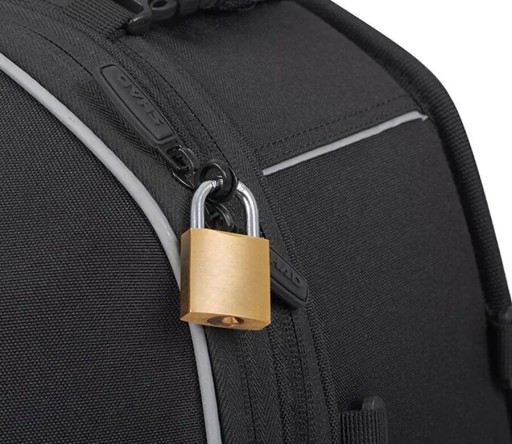 - Posiada również zamki błyskawiczne zamykane na kłódkę oraz przystosowaną do użytku w rękawiczkach. Odblaskowe detale na zewnątrz i uchwyt do przenoszenia uzupełniają te wszechstronne torby motocyklowe.