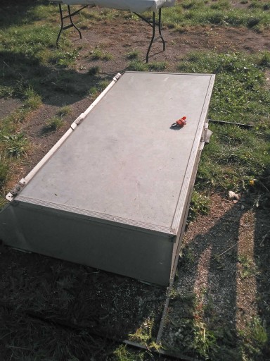 Aluminiowy box dachowy do kampera, do busa ze stelażem oraz śrubami i dystansami montażowymi.