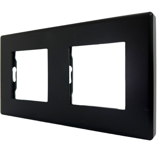 Ramka plastikowa podwójna czarna przeznaczona do montażu z modułami marki MIUUN. Ramkę można montować zarówno poziomo jak i pionowo