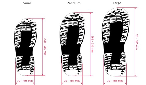 S - na rozmiar buta 34-39,5 / długość skorupy buta 250-285 mm, szerokość skorupy buta 70-105 mm