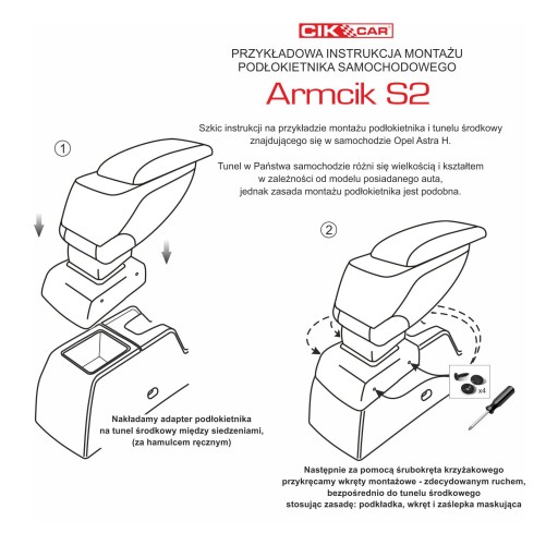 PODŁOKIETNIK + ADAPTER MONTAŻOWY dedykowany wyłącznie do samochodu OPEL ZAFIRA I 1999>2004 + ZESTAW MONTAŻOWY (śruby, zaślepki).