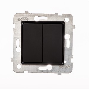 ROSA Łącznik podwójny (świecznikowy) bez ramki, kolor czarny mat ŁP-2Q/M.CZ Napięcie znamionowe: 250V Prąd znamionowy: 10AX Stopień ochrony: IP-20 Zaciski: gwintowe