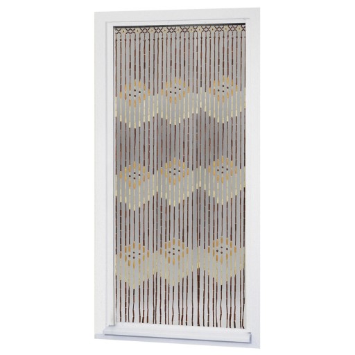 Zasłona została wykonanaz naturalnego drewna. Zrobiona została z koralików w różnych odcieni brązu i beżu, które układają się w regularne wzory. Doskonale sprawdzi się we wnętrzach, w których królują naturalne materiały oraz klimat boho.
