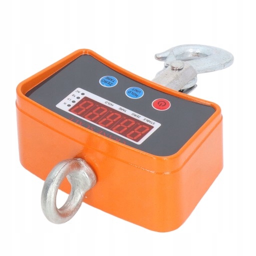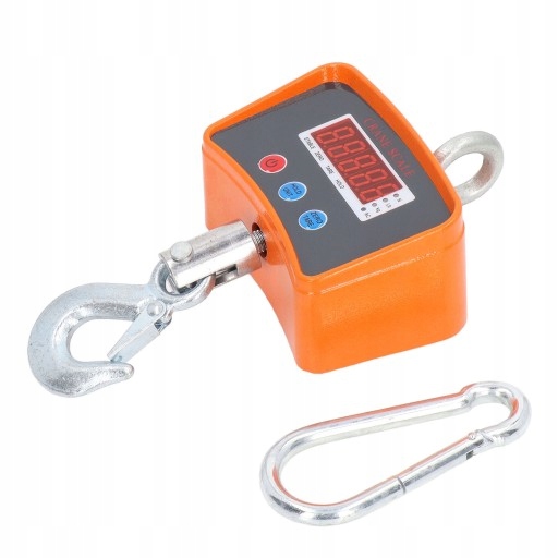 Specyfikacja: Typ artykułu: elektroniczna waga hakowa Materiał: stop aluminium, stal nierdzewna Zasięg: ok. 1000 kg / 2204,6 funta Minimalna pojemność: 100g Zakres tary: 100% F.S. Automatyczne zerowanie: ±50% pełnej skali Ręczne zerowanie: ±2% pełnej skali Maksymalne bezpieczne obciążenie: 120% FS Ostateczne obciążenie: 300% F.S. Żywotność baterii: >150 godzin Jednostka masy: KG, LB, N Wbudowana bateria: Akumulator 8 V 1,3 Ah