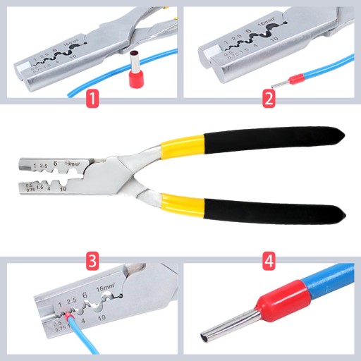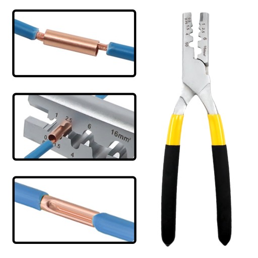 Produkt ten to praktyczne narzędzie do zaciskania tulejek izolowanych i nieizolowanych, pojedynczych i podwójnych. W głowni narzędzia znajdują się wyżłobienia dopasowane do różnych wielkości tulejek.