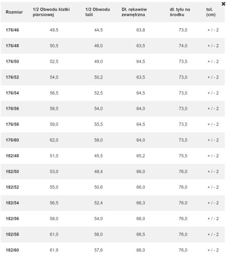 - Rozmiar marynarki: 48/176