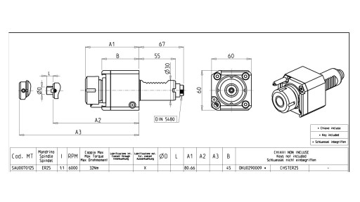 Державка с осевым приводом VDI30 ER25, SAU0070125