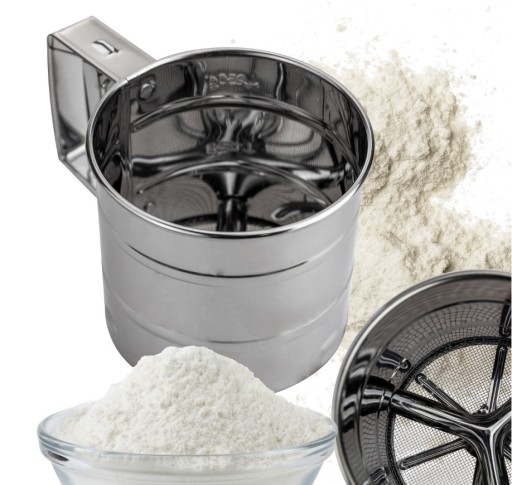 PRZESIEWACZ KUCHENNY MĄKA CUKIER KUBEK SITO STAL
