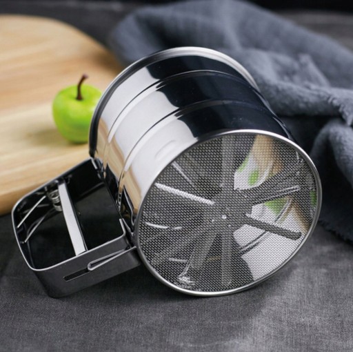 ✔️ W zewnętrznej części przesiewacza umieszczono miarkę, która zdecydowanie ułatwia pracę w kuchni.