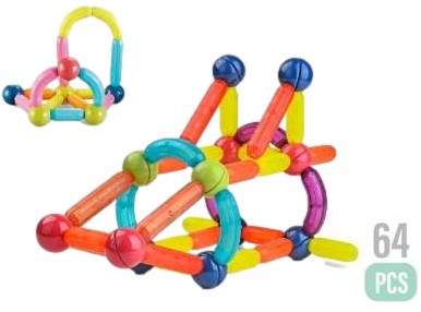 KLOCKI MAGNETYCZNE KONSTRUKCYJNE EDUKACYJNE ZESTAW 64 elementy