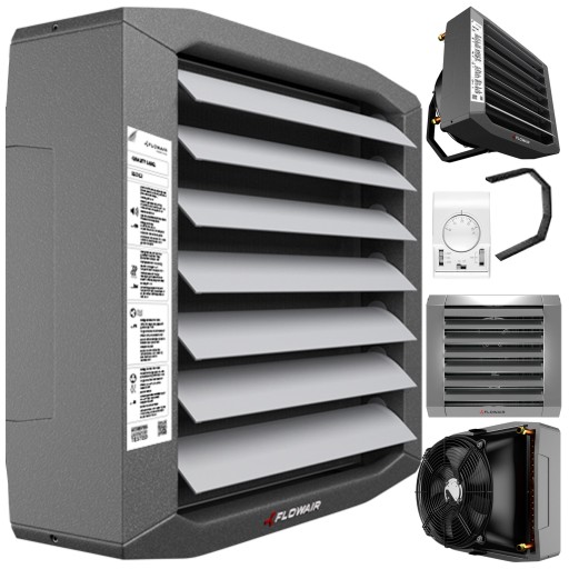 Zestaw LEO S2 nagrzewnica wodna z 3-stopniowym regulatorem obrotów z termostatem i konsolą montażową 2,1-26,5 kW