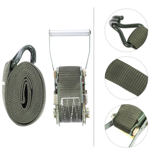 Ten pasek do wiązania jest zawsze pod ręką. Może bezpiecznie i łatwo zabezpieczyć ładunek w pojeździe. Z łatwością zmieści się w bagażniku lub pod fotelem samochodowym. Został zbudowany z myślą o funkcjonalności, łatwości użytkowania i bezpieczeństwie dla bardzo ciężkich ładunków. Nadaje się do spinania ładunku i zabezpieczania motocykla, pojazdu, roweru itp.