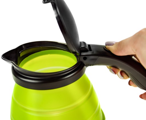 To, czego nie spodziewasz się, gdy myślisz o czajniku to silikonowa, składana obudowa, która sprawia, że czajnik zajmuje bardzo mało miejsca. Kompaktowe wymiary, wytrzymały materiał i niewielka waga to bardzo duże zalety, które sprawiają, że czajnik zmieści się do każdego bagażu nawet podręcznego czy do plecaka. Dodatkowo po złożeniu możesz go przechowywać w szafce czy szufladzie, co zapewni cenne miejsce na blacie kuchennym na przykład w niewielkiej przyczepie czy kamperze. Szeroko otwierająca się pokrywka umożliwia wygodne nalewanie wody i czyszczenie. Wewnątrz obudowy zainstalowana jest duża okrągła stalowa grzałka. Wystarczy nalać odpowiednią ilość wody, włączyć przycisk na pozycję 1 i kiedy zapali się czerwona lampka kontrola umieszczona w przełączniku czekać na zagotowanie wody. Funkcjonalność w czystej postaci! Dodatkową zaletą tego modelu czajnika jest cicha praca i mały pobór mocy, tylko 750 W