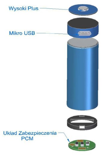 - Wbudowany układ zabezpieczenia PCM, który zabezpiecza obwód przed: przeładowaniem, rozładowaniem, przeciążeniem oraz zwarciem