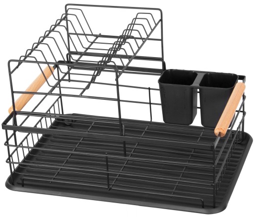 SUSZARKA DO NACZYŃ DWUPOZIOMOWA CZARNA STOJĄCA OCIEKACZ