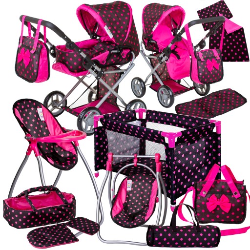 Коляска для куклы 3-в-1 SET XXL, кроватка и стульчик