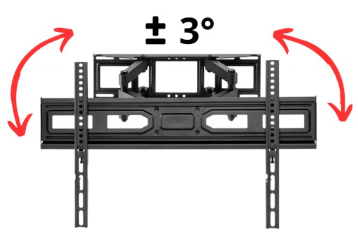 Uchwyt umożliwia skorygowanie poziomu potrzebne np. przy niezbyt dokładnym wywierceniu otworów w ścianie w zakresie - 3° / + 3°
