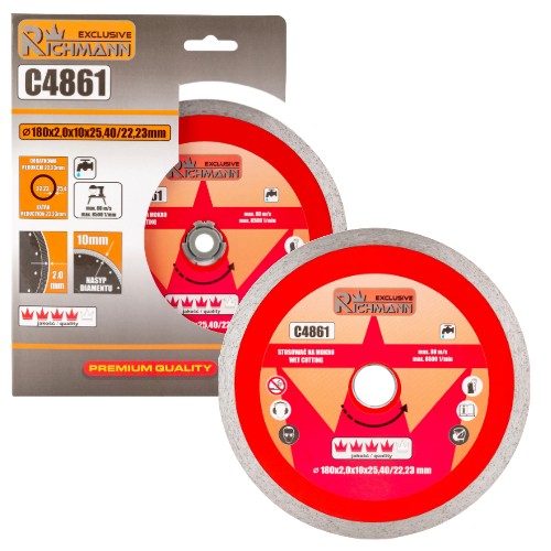 TARCZA DIAMENTOWA PEŁNA CIENKA DO CIĘCIA NA MOKRO BETONU 180x2x25,4/22,2mm RICHMANN C4861
