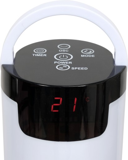 - Funkcje: tryb podmuchu x3 (naturalny, normalny, nocny), czasomierz (timer), wskaźnik temperatury