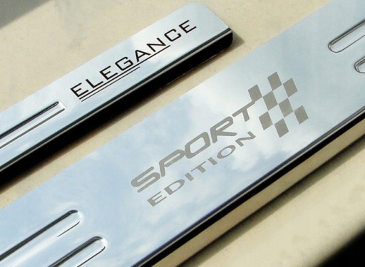 Podana cena dotyczy kompletu 4szt. na przód i tył do wersji 4 drzwiowych lub 2szt. na przód do wersji 2 drzwiowych. Nakładki progowe są do wyboru ze stali polerowanej (chrom) lub satynowanej (matowej) z napisem na środku lub mniejszym na końcach nakładek.