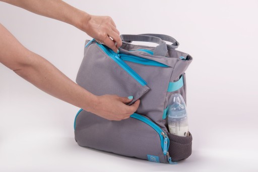 Po bokach torby oprócz kieszeni na butelki, znajdziemy elastyczne taśmy przytrzymujące butelki różnych rozmiarów czy tez ubranka, pieluszkę tetrową i inne.