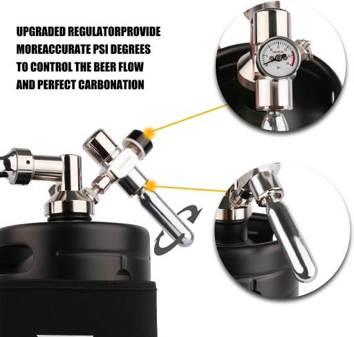 - Zaktualizowany regulator: ulepszony regulator może precyzyjnie sterować ciśnieniem. Dokładne dopasowanie ciśnienia poprzez przekręcenie pokrętła regulacji może nadać piwu idealny dwutlenek węgla.
