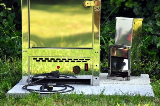 Do nagrzania i utrzymania temperatury w komorze wędzarniczej zastosowanie znalazła grzałka rurkowa o mocy 1,8 kW pozwalającą wędzić również w niskich temperaturach otoczenia.