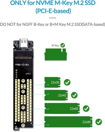 Tylko M. 2M KEY SSD (NVME - Protocol) jest obsługiwany w 2280 przez obudowę, 2260, 2242, 2230. Kompatybilny z wieloma systemami operacyjnymi: Windows / Mac / Linux;