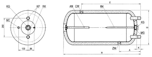 - parametry pracy zbiornika: maksymalne ciśnienie i temperatura robocza pr = 0,6 MPa tr = 80°C