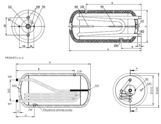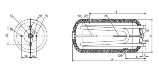 - wymiennik z podwójną wężownicą: