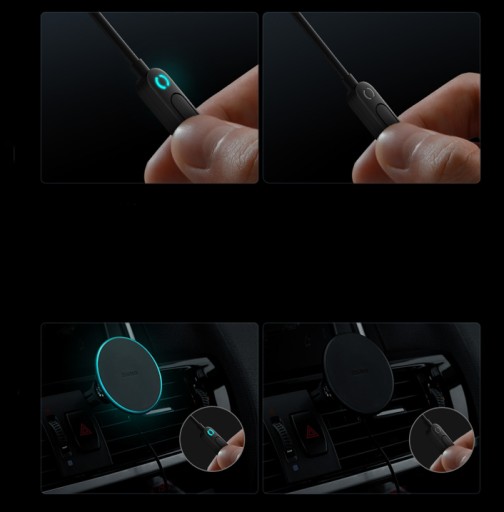 Ładowarka zasilana jest za pomocą gniazda zapalniczki, a magnetyczny uchwyt łatwo zamontujesz na kratce wentylacyjnej. Wbudowany pilot sterujący umożliwia ręczne włączenie/wyłączenie zasilania. Co więcej, pierścień magnetyczny oferuje nastrojowe, niebieskie światło, dzięki czemu bez problemu znajdziesz go również po zmroku i szybko podłączysz swój telefon.