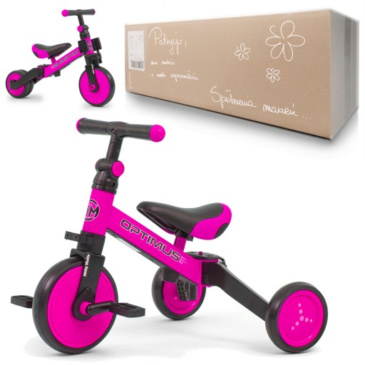 Rowerek Optimus jest idealnym rozwiązaniem dla Maluszków, które dopiero rozpoczynają naukę jazdy i na rowerku i jeszcze nie potrafią utrzymać równowagi na dwóch kółkach, ale chcą już samodzielnie się przemieszczać.