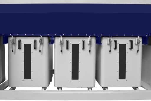 - Pojemniki odpadowe zaprojektowane w taki sposób aby zachować 99.99% hermetyczności układu, jednocześnie zostały wyposażone w mobilny system jezdny