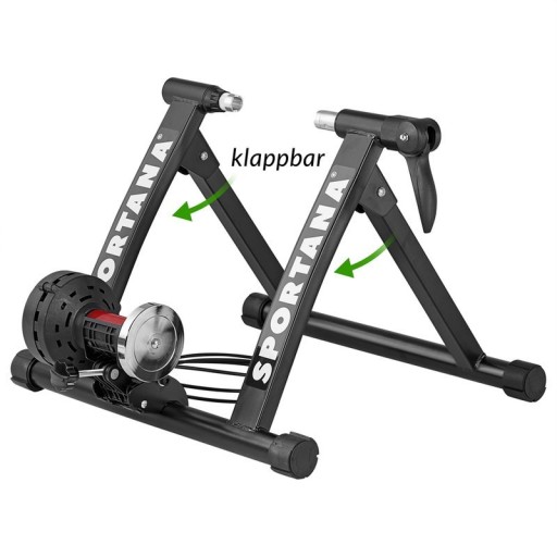 Dzięki regulacji oporu podczas jazdy możesz indywidualnie zaprojektować swój trening. Opór kontrolowany jest przez wałek magnetyczny umieszczony pod tylnym kołem roweru, 6-stopniowa zmiana oporu montowana jest na kierownicy roweru. Praktyczne szybko-złącza ułatwiają mocowanie roweru do trenażera, a wspornik przedniego koła zapewnia dodatkową stabilność. Trenażer rolkowy jest składany.